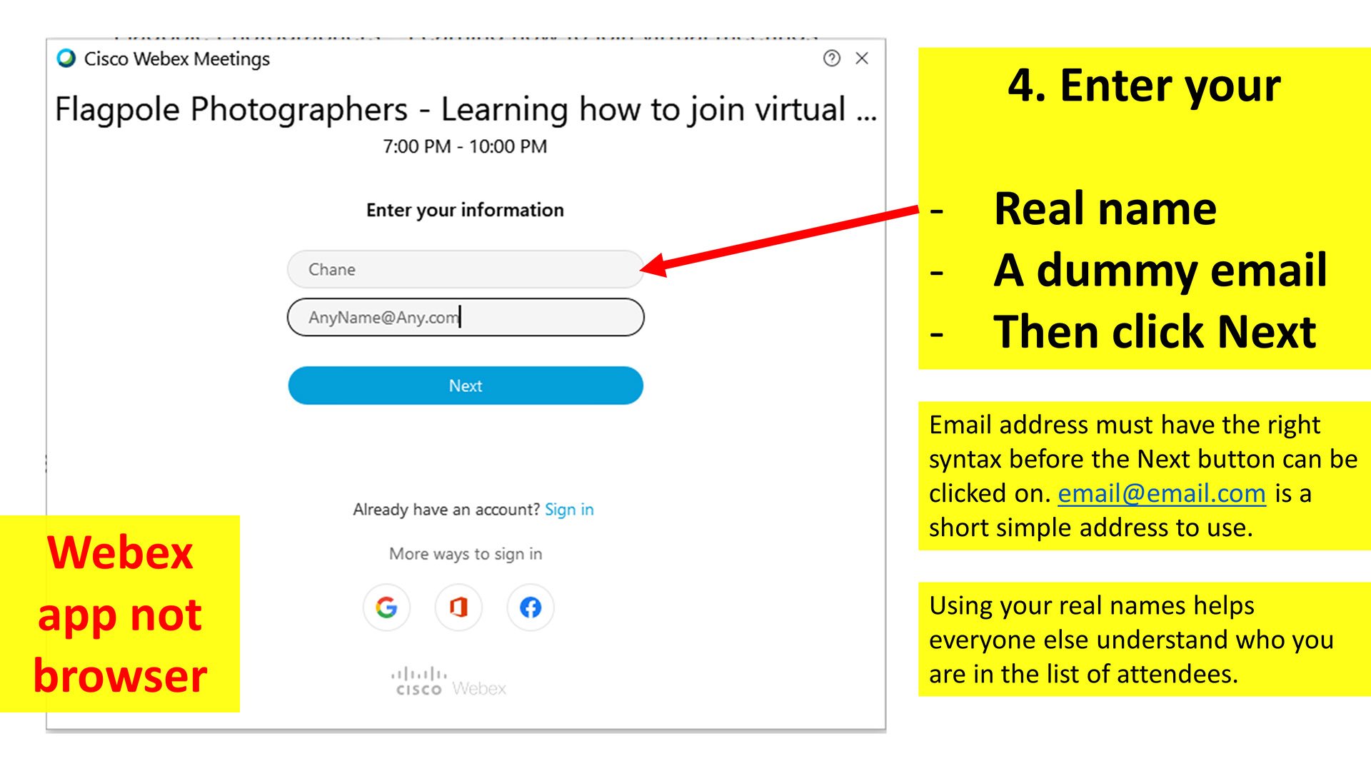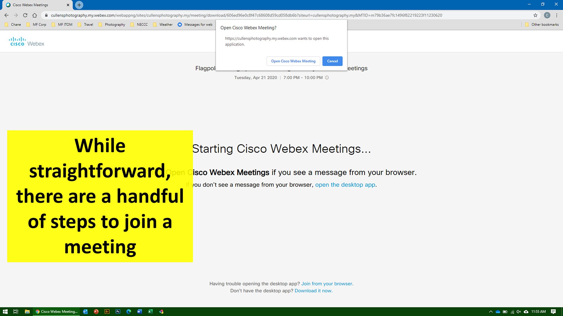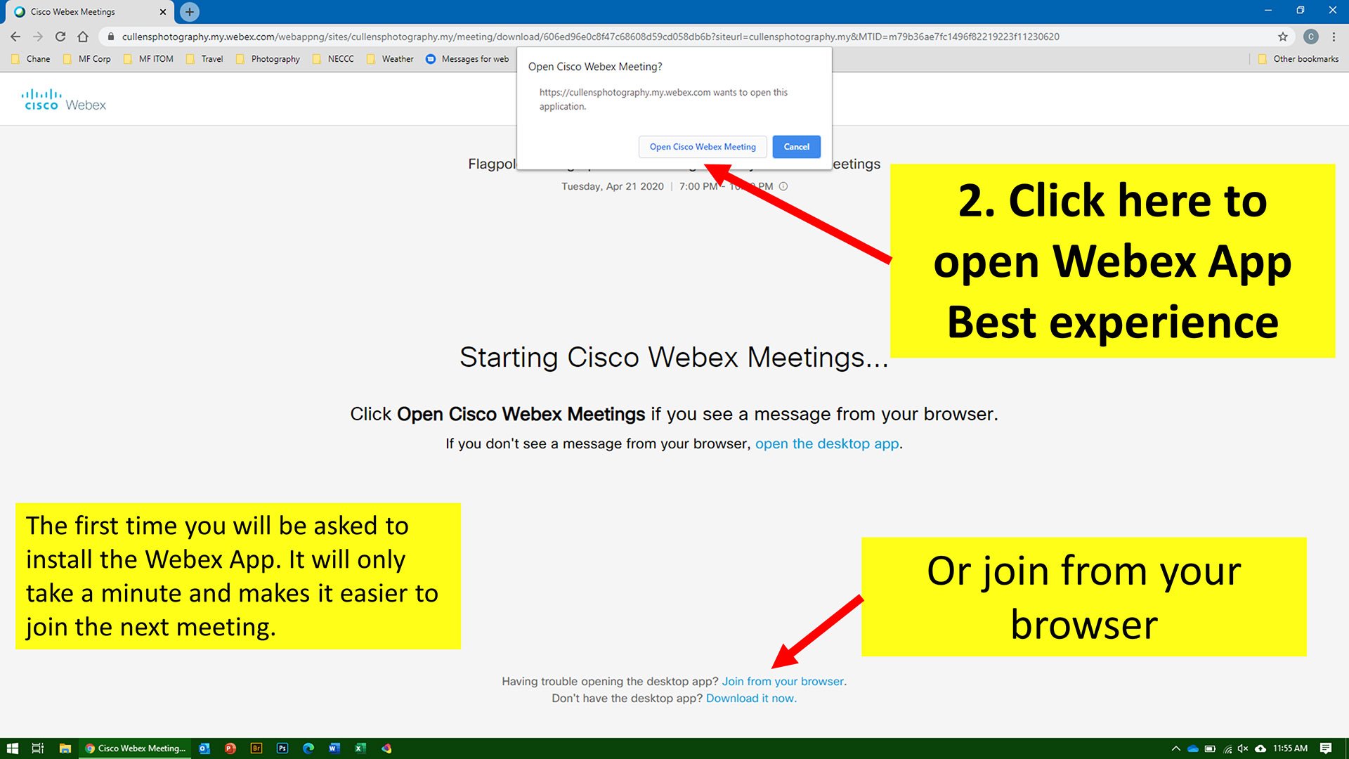 Similar to the many activities we do in photography, there are many ways to accomplish something. This article covers a few options on how to join our virtual messages. We use Cisco Webex technology for meetings.